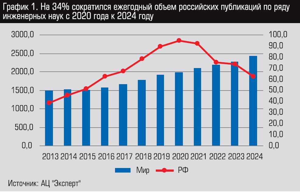 Интерес к этой области знаний растет. С 2013 года в 10 инженерных областях по всему миру наблюдается устойчивый прирост числа научных публикаций на 5% в среднем ежегодно (график 1). Для России в период с 2015 до 2020 года число инженерных статей возросло на 84% и достигло своего пика в 94 тыс. публикаций в 2020 году. Однако после активность пошла на спад, и уже в 2024 году мы зафиксировали сокращение российского сегмента инженерных публикаций почти на 35% по сравнению с публикационным пиком 2020 года.