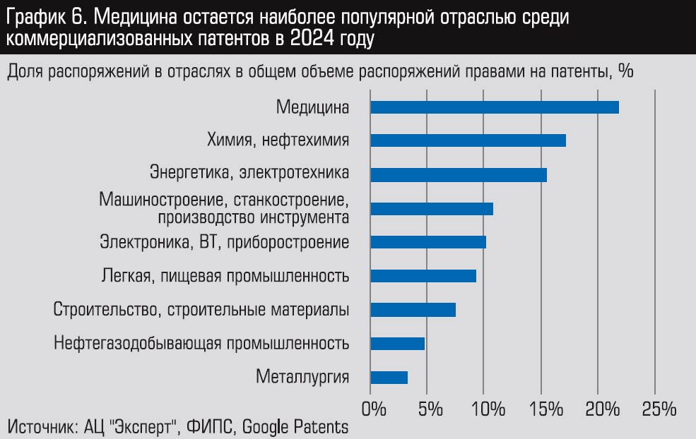 Число коммерциализованных патентов значительно снизилось — если в 2017 году около 7% патентов были проданы или лицензированы, то в 2021 году эта доля составила только 3%.