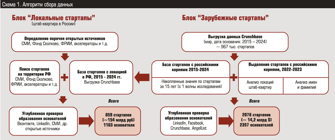 Рейтинг построен на использовании базы данных, включающей около трех тысяч стартапов и трех с половиной тысяч их основателей. Объектами исследования являются «основатели с российскими корнями», окончившие российский вуз и создавшие стартап в любой точке мира.