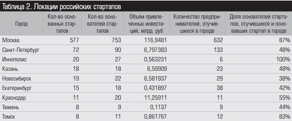 В целом же стартапы в этот период создавались в 48 городах России.