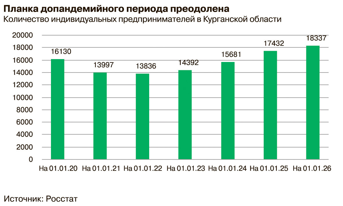 Количество хозяйствующих субъектов всех видов экономической деятельности в регионе наконец вернулось к допандемийным значениям и к началу 2026 года превысило 30 тысяч, увеличившись за прошлый год на 2,8%. А число индивидуальных предпринимателей выросло на 5,2%, составив к началу этого года рекордные для региона 18 337 ИП.