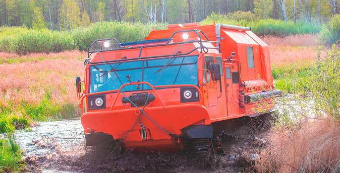 Еще одна особенность «тээмки» — коробка передач с гидромеханическим приводом. Передачи переключаются, не обрывая поток мощности, благодаря чему проходимость значительно повышается, средняя скорость движения сохраняется, а почва под гусеницами не повреждается. Заметим, что ТМ-140 соответствуют высоким требованиям экологической безопасности, за что достойны отдельного уважения. Удельное давление гусениц вездехода на грунт составляет 0,2 кг/см2. Этот показатель гарантирует бережное отношение к ландшафту. Какая техника подобного класса может таким похвастать?