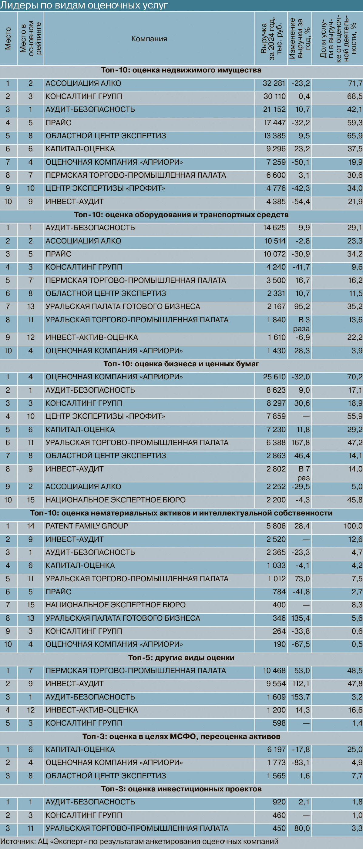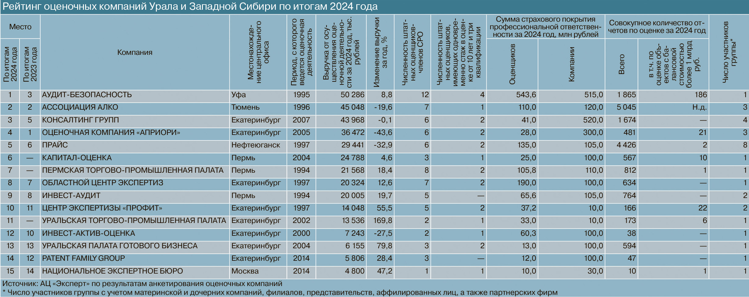 Аналитический центр «Эксперт» представляет ежегодный рейтинг оценочных компаний Урала и Западной Сибири по итогам 2024 года.