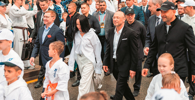 Открылся праздник спортивным парадом, в котором приняли участие 1300 юных спортсменов, занимающихся в спортивных секциях РМК. Основатель Русской медной компании Игорь Алтушкин представил квартал «Архангел Михаил» руководителям региона и города.