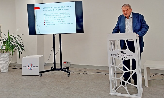 Владимир Чекашев поднял проблему глобального потепления климата. По его словам, более чем за сто лет температура воздуха в среднем повысилась на 1,5 градуса Цельсия. В Свердловской области этот показатель вырос значительнее – на 3 градуса. Одной из причин глобального потепления стал рост выбросов парниковых газов за счет сжигания ископаемого топлива при развитии промышленности.