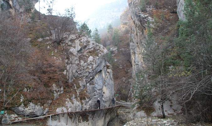 Карадахская теснина – горное ущелье, расположенное районе села Карадах. Высота каменных стен достигает 170 метров. В ущелье проложена тропа длиной около 1,5 км. Живописный маршрут проходит по горной тропе, подвесным мостам вдоль отвесных скал, дорога пересекает ручей и завершается у водопада с кристально чистой водой. Идти по этой тропе трудно и порой опасно. Протекающая в ущелье река Квартал во время дождя превращается в мощный поток воды, поэтому посещать теснину лучше в сухую погоду. К тому же существует опасность схода селя. На этот случай в ущелье установлена система оповещения. Услышав сигнал, гости обязаны покинуть Карадахскую теснину. После ущелья туристов снова ждет подъем в горы.