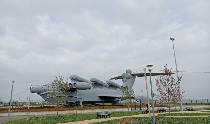Экраноплан «Лунь» пока огорожен забором и не покрашен