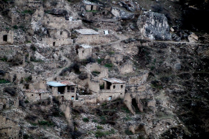Дома аула - призрака Старый Кахиб. Вид с площадки селения Кахиб