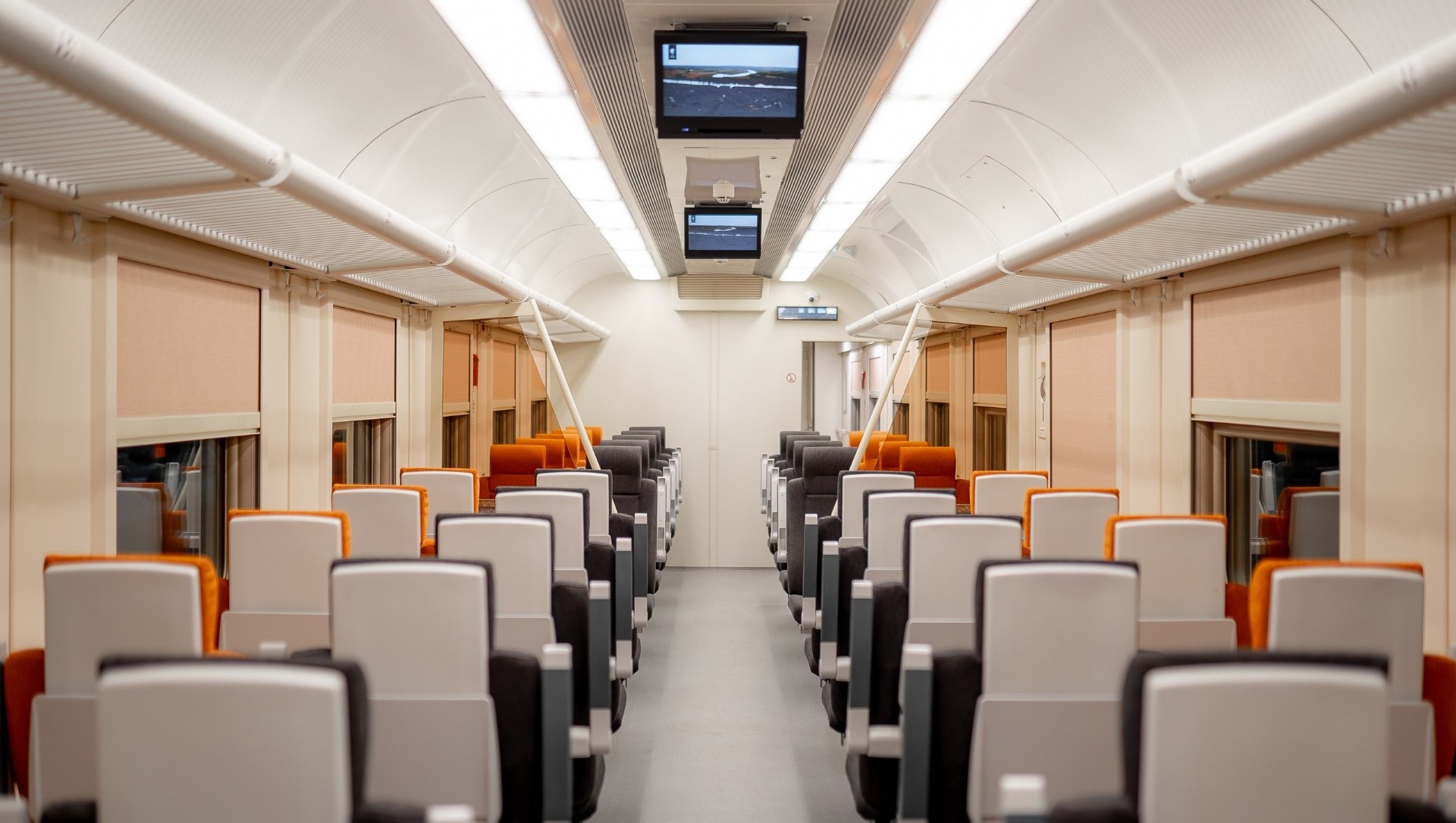 Новый подвижной состав соответствует современным требованиям комфорта и безопасности. Вагоны оснащены системами кондиционирования воздуха, экологически чистыми туалетными комплексами, информационными табло. В салонах установлены эргономичные кресла с подлокотниками, опорами для ног и откидными столиками. В каждом блоке кресел есть персональные розетки для зарядки гаджетов. В двух вагонах оборудованы места для установки инвалидных колясок и предусмотрены подъемники для посадки/высадки маломобильных пассажиров.