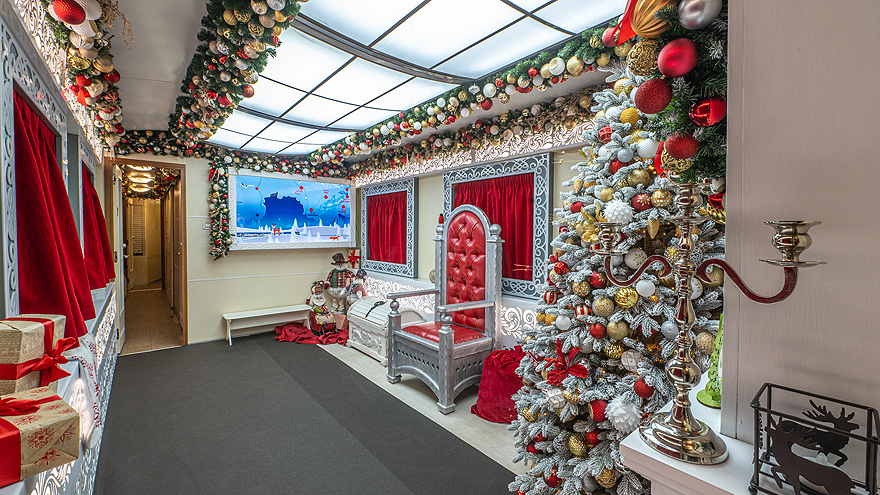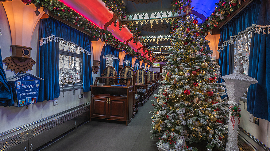 Поезд Деда Мороза – это празднично оформленная передвижная резиденция новогоднего волшебника, в составе которой вагоны для игр и развлечений детей. Во главе поезда – паровоз, украшенный гирляндами из сотен фонариков. За 30 минут до прибытия волшебного поезда на вокзалах СвЖД для юных гостей и их родителей будет организована развлекательная программа с участием артистов и аниматоров, которая позволит окунуться в атмосферу зимней сказки. После прибытия поезда Дед Мороз и Снегурочка выйдут из вагона, чтобы поприветствовать собравшихся. Во время стоянки состава все желающие смогут сделать памятные фото на фоне паровоза и ярких вагонов, посетить вагон-лавку с северными сувенирами, фотокупе и вагон-ресторан.
