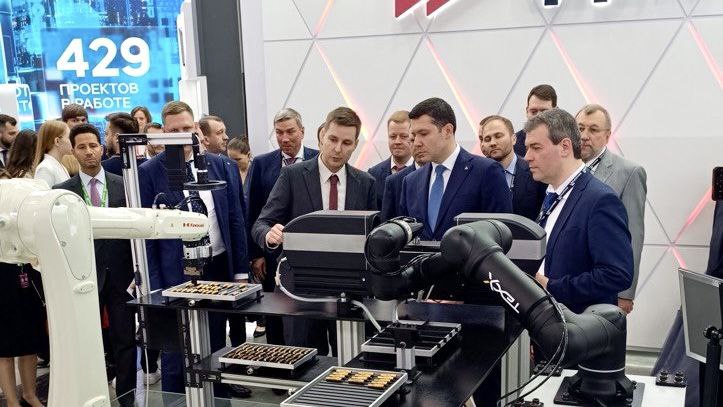 В первый день работы выставки "Иннопром-2025", 7 июля, стенд компании "Интратул" посетила официальная делегация Минпромторга России, возглавляемая руководителем ведомства Антоном Алихановым. Интерес к решениям на базе гибких производственных ячеек объясняется тем, что они соответствуют задачам национального проекта "Плотность роботизации" (часть более широкого нацпроекта "Средства производства и автоматизации").